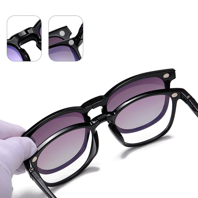 Lentes con clip solar imantado. Exclusivo modelo unisex que incluye 1 sobre lentes imantados intercambiables color. El sobrelente tiene UV400 y además es polarizado.