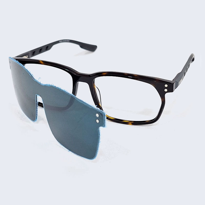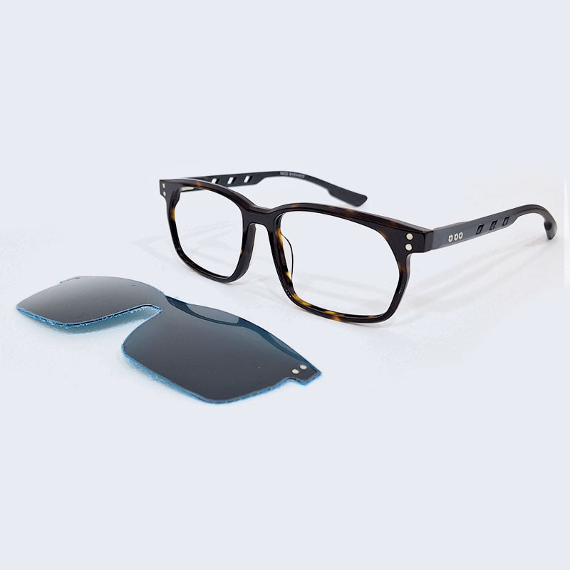 Montura de Acetato de celulosa con bisagra metálica flexible. Esta exclusiva marca es de la más alta calidad y tiene un diseño moderno y apto para cualquier tipo de graduación. Este modelo incluye un clip solar imantado.