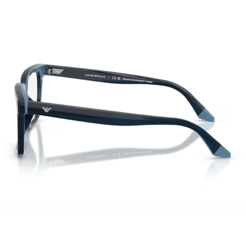 Este diseño óptico cuadrado hace una declaración segura con su silueta masculina, mientras que la parte interna del frente muestra una construcción bicolor moderna que añade profundidad y dimensión a las líneas fuertes de la montura. Emblemático del enfoque moderno de Emporio Armani, combina precisión estructural con detalles lúdicos.
