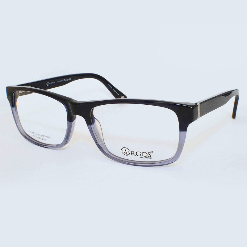 Montura de acetato de celulosa con bisagra metálica flexible.