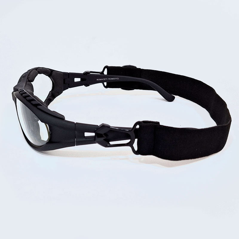 Lentes para deporte. Este un modelo unisex que viene con un protector de goma en la parte frontal interna de la montura, brindando la amortiguación de cualquier golpe. Asimismo viene con una banda elástica ajustable que permite que se adapte a cualquier tamaño de cabeza. Importante si desea ponerle medida: No recomendable para medidas con astigmatismo superiores a 3.00 y miopía superior a 4.00