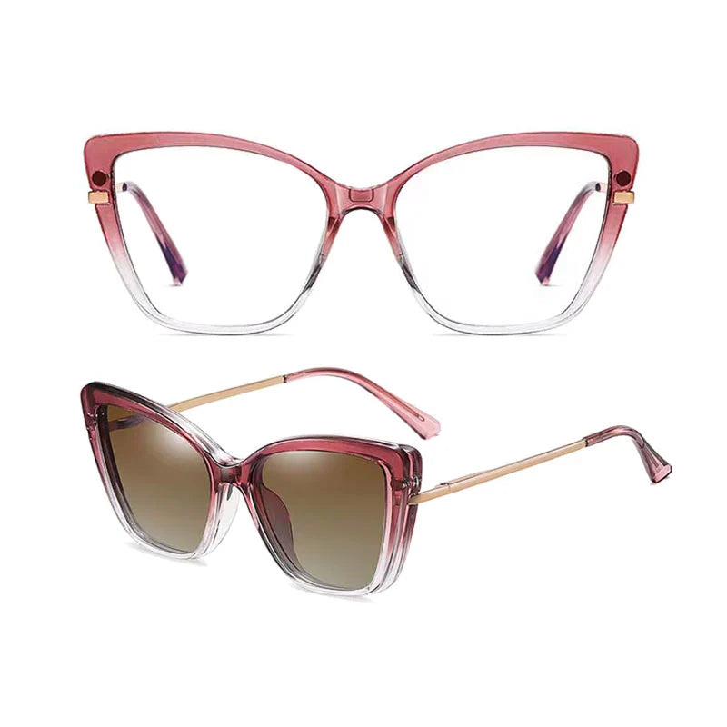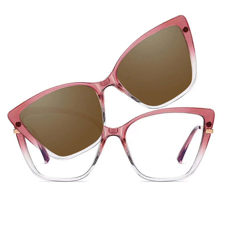 Estas elegantes gafas de sol de estilo cat eye están diseñadas para la mujer moderna, presentando un atractivo color rosa salmon que resalta su singularidad. Con detalles en dorado que añaden un toque de sofisticación, estas gafas cuentan con un clip solar polarizado, garantizando una protección óptima contra los rayos UV mientras complementan cualquier atuendo.